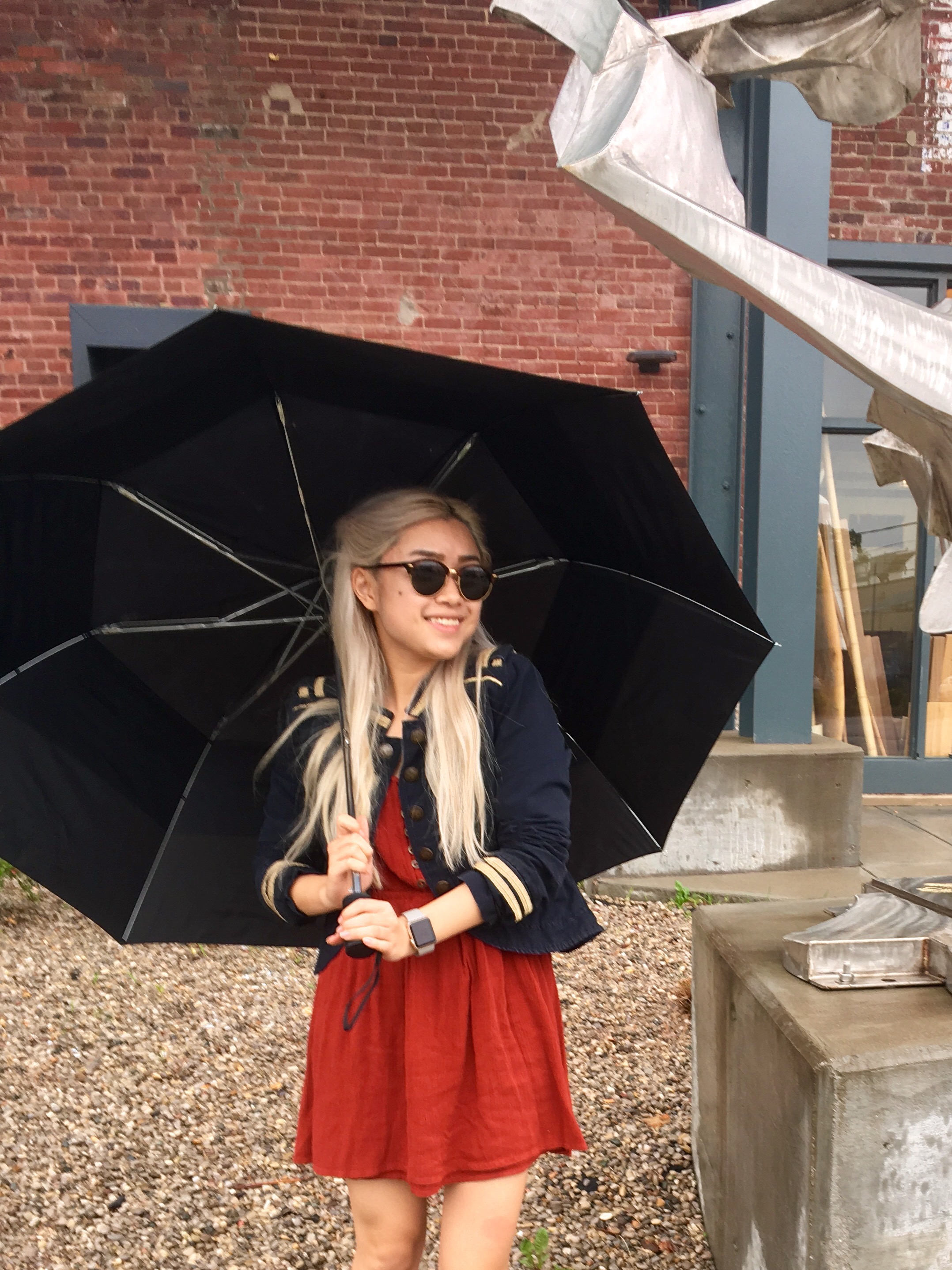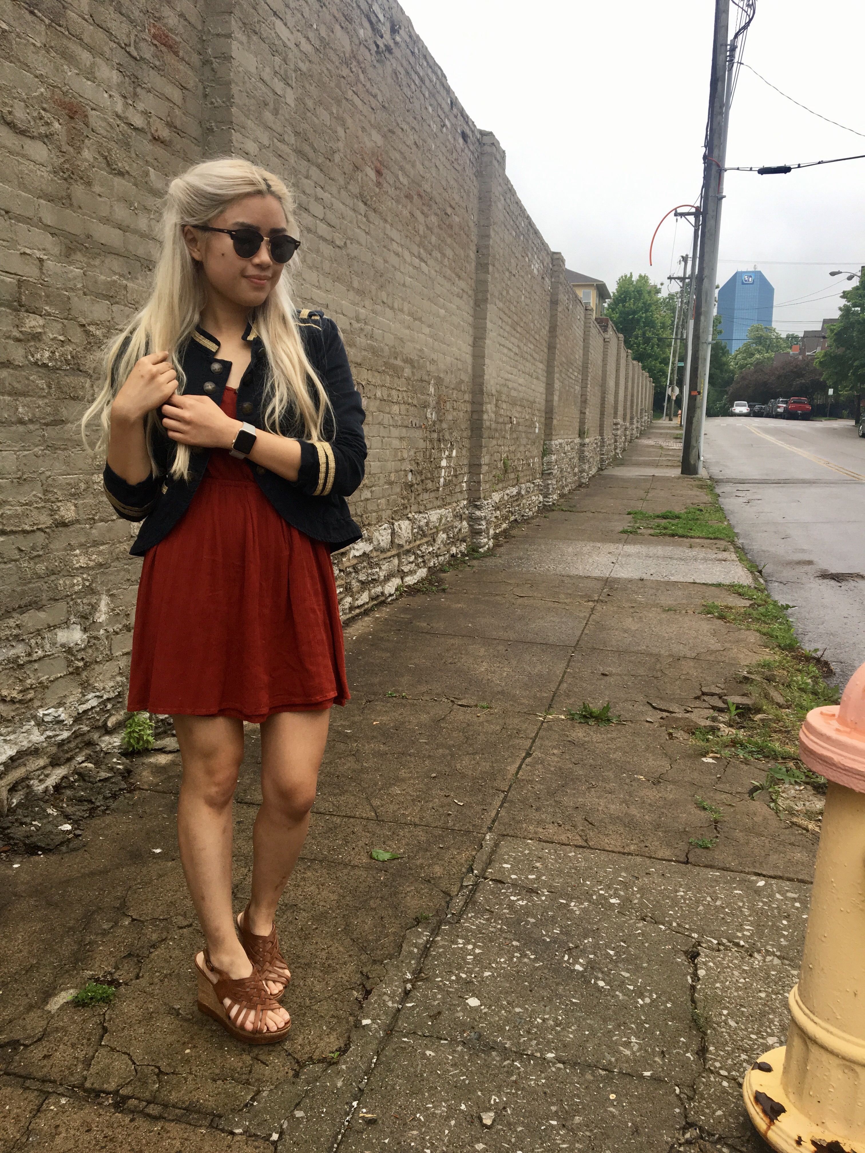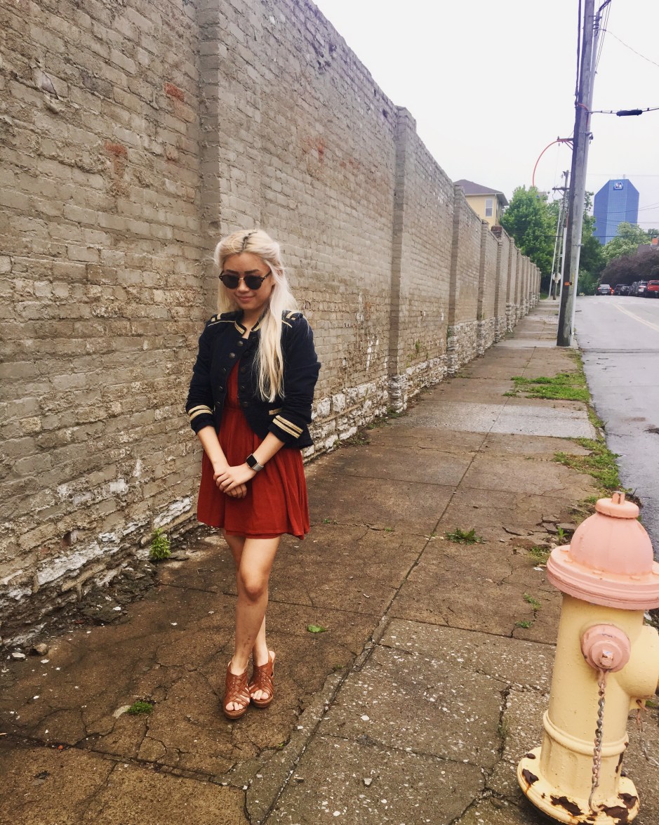 And it’s a pretty simple one – just a blue military jacket over an orange sweater – but somehow, it just turned out really nice. Maybe it was the way I styled my hair (there were definitely some Daenerys vibes going on there), or maybe it was the contrast of the blue and orange, but whatever it was, I was feeling it today.