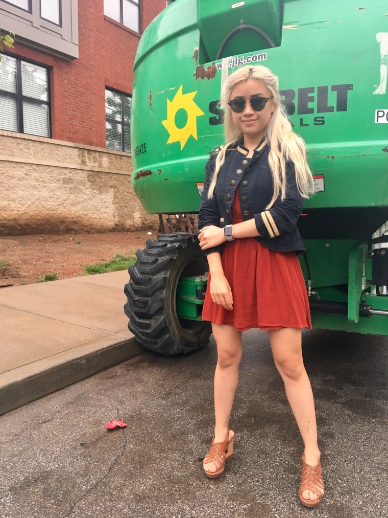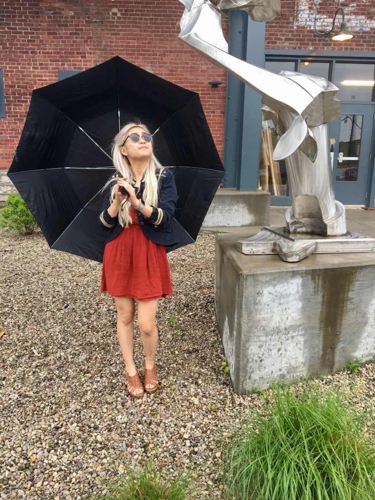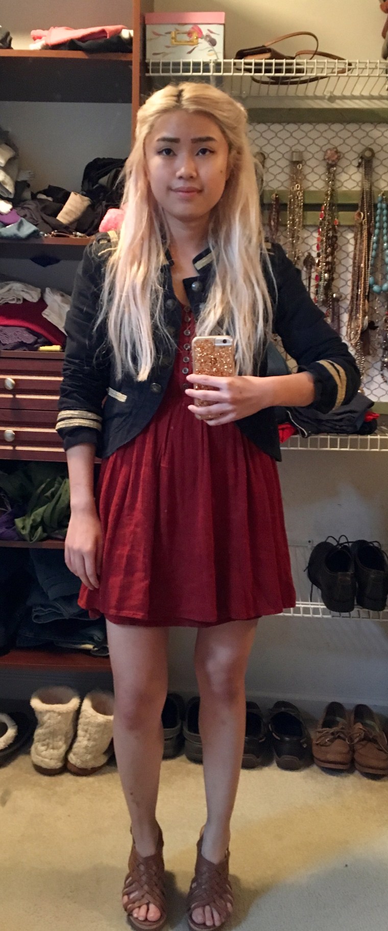 And it’s a pretty simple one – just a blue military jacket over an orange sweater – but somehow, it just turned out really nice. Maybe it was the way I styled my hair (there were definitely some Daenerys vibes going on there), or maybe it was the contrast of the blue and orange, but whatever it was, I was feeling it today.