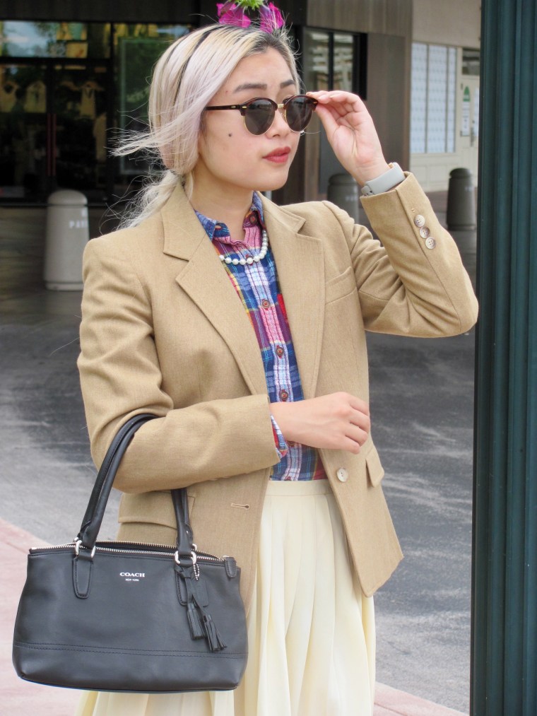 For this interview, I chose an outfit I had actually already had planned out for weeks – and one that I can only describe as “schoolteacher-esque.” A very stylish schoolteacher, who wears Evan Picone jackets and Ray-Bans, but a schoolteacher nonetheless. Actually, fun fact: two of the pieces today were vintage/thrifted – the jacket, which I got at Salvation Army, and the skirt, which I got along with a cute jacket at an antique mall.