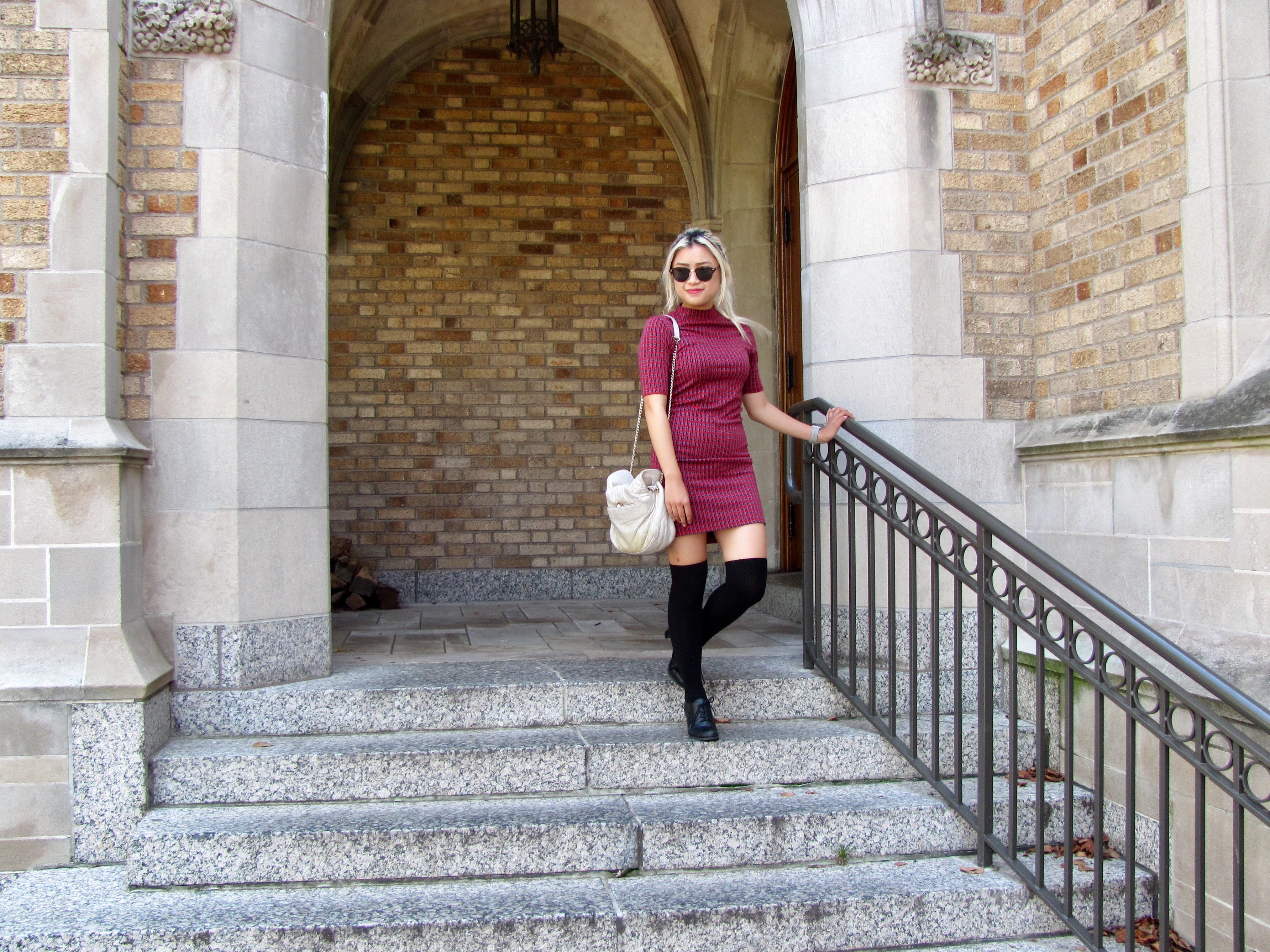 Anyway, the dress is vintage, but the styling is not. My bag, thigh-high socks, sunglasses, and shoes are all contemporary, and thus, the outfit doesn’t come off as a 60s costume.