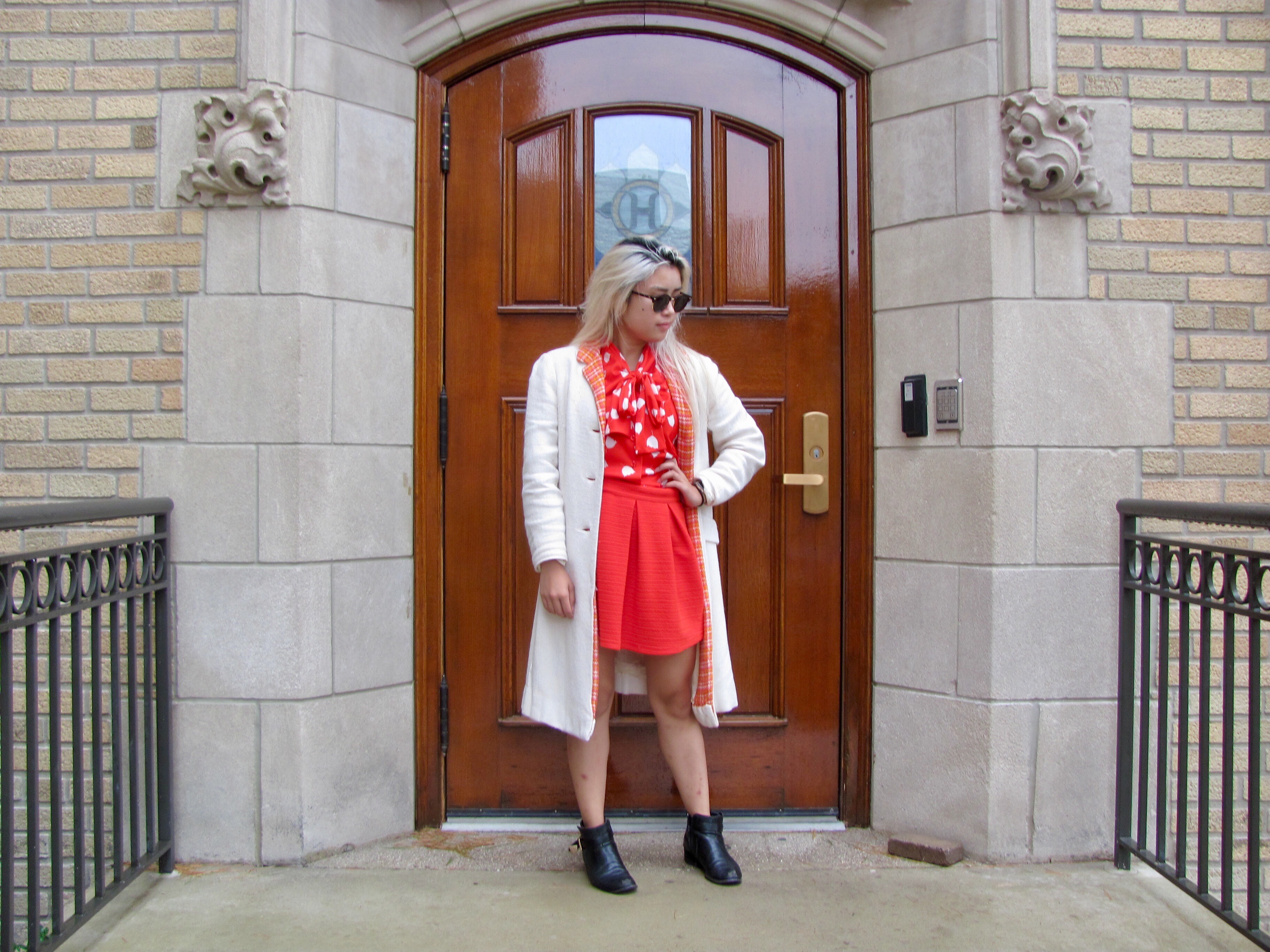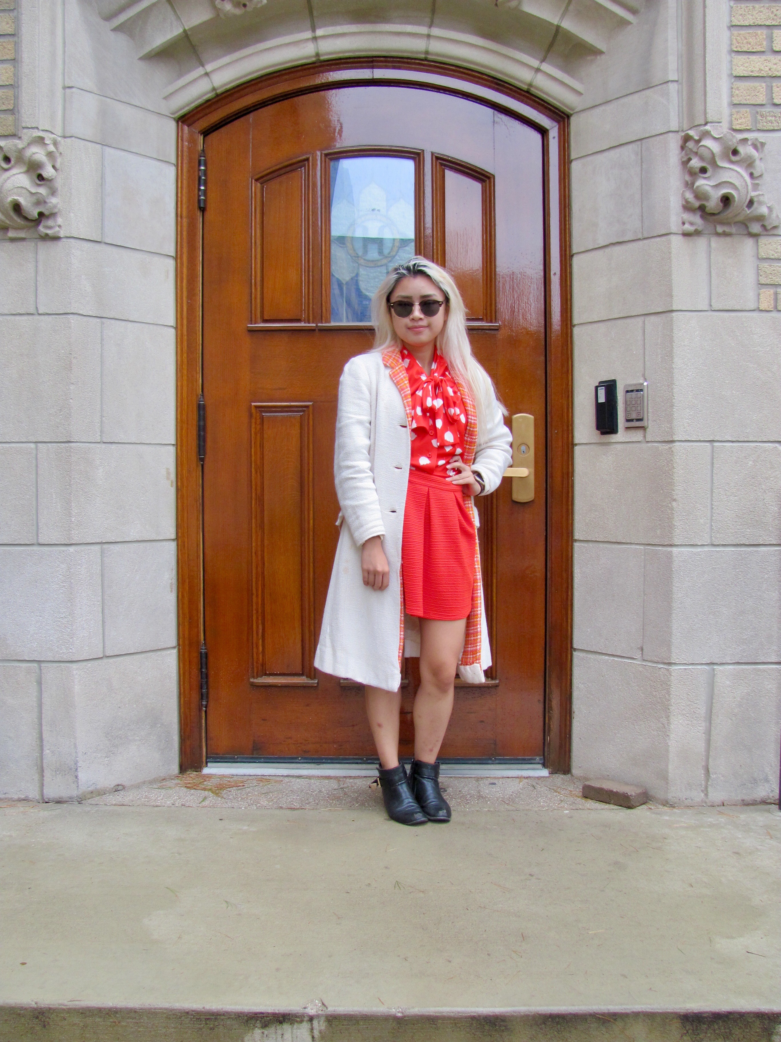 The prospect of rain, however, doesn’t scare me in the least. I love the rain, and I have since I was a kid! I have two rain coats, two pairs of rain boots, a rain hat, and an umbrella (that I left at home…), so I’m always prepared with a fashionable outfit for a storm.