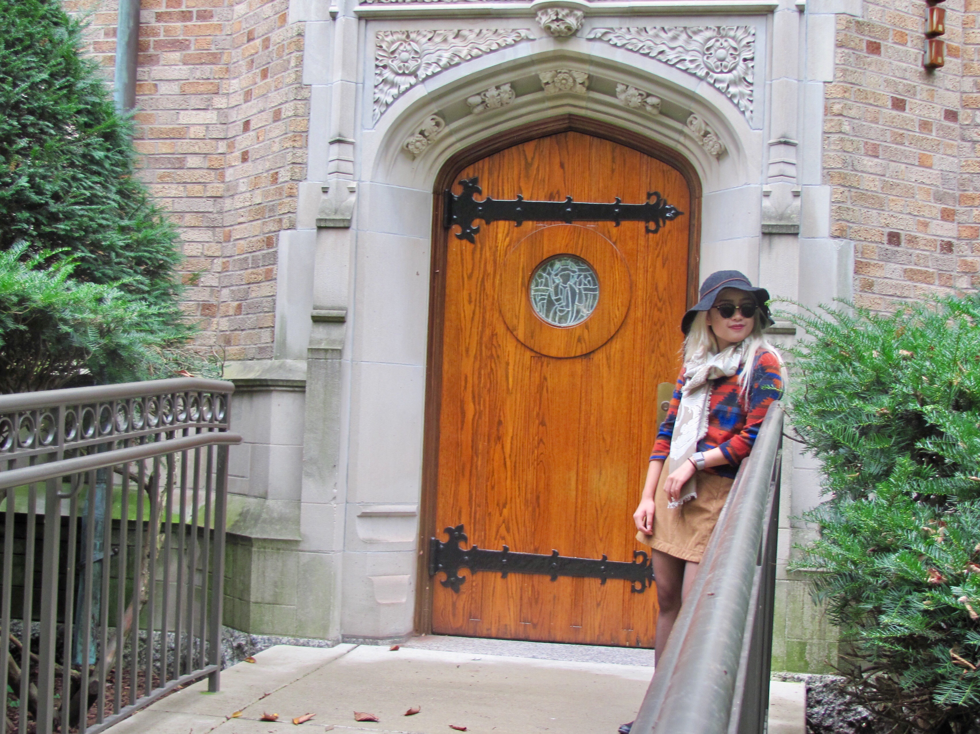Meaning, people are likely to come walking out the door while you’re standing there posing for your fashion blog. And if you’re not paying attention, some guy might come walking out as you’re leaning against the door, pushing you over and ending your photo shoot session prematurely.