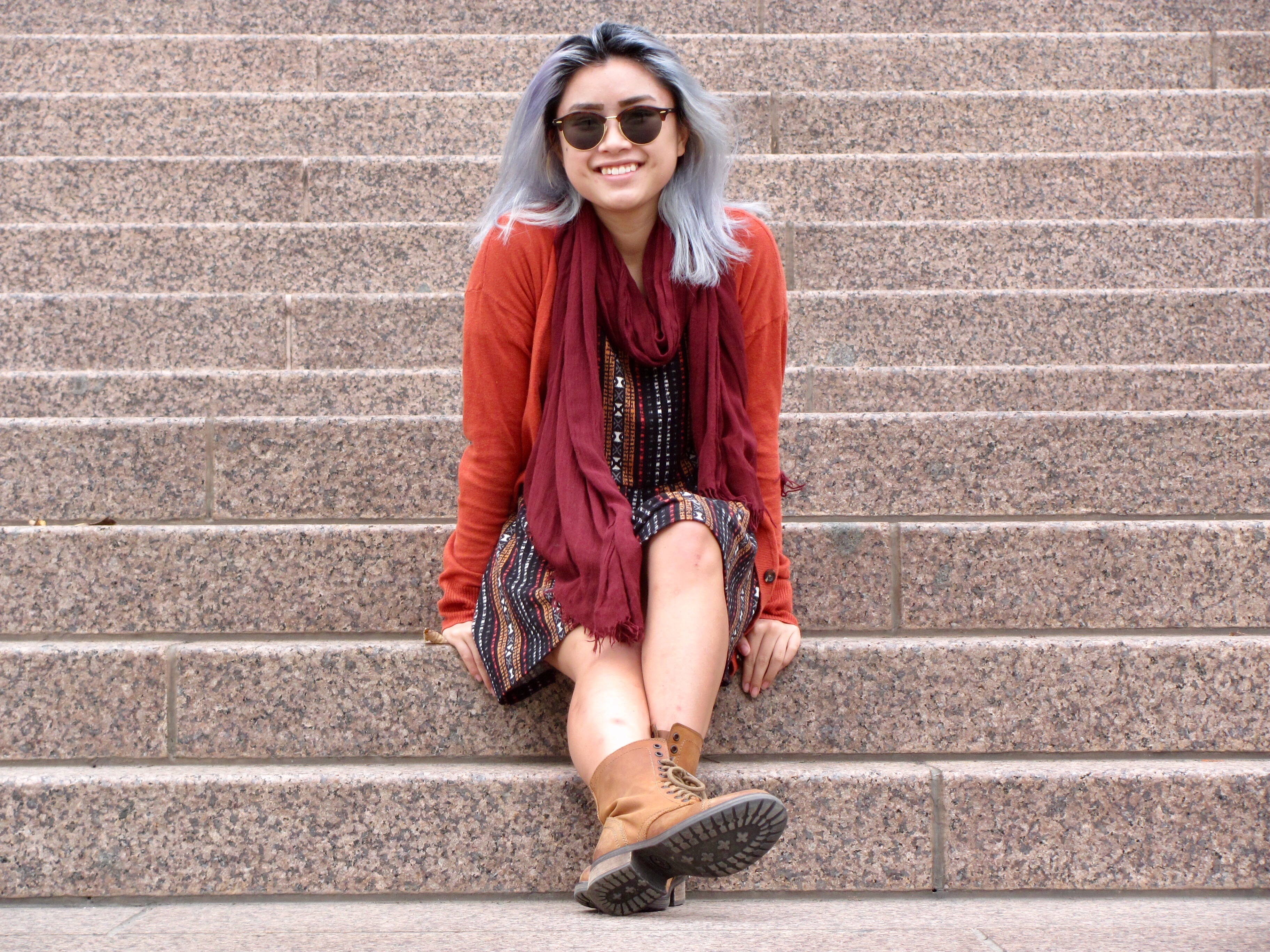 I wish. Rather, it was chilly and autumnal outside while I was doing these photos, and my thin orange swearer and burgundy scarf only helped so much.