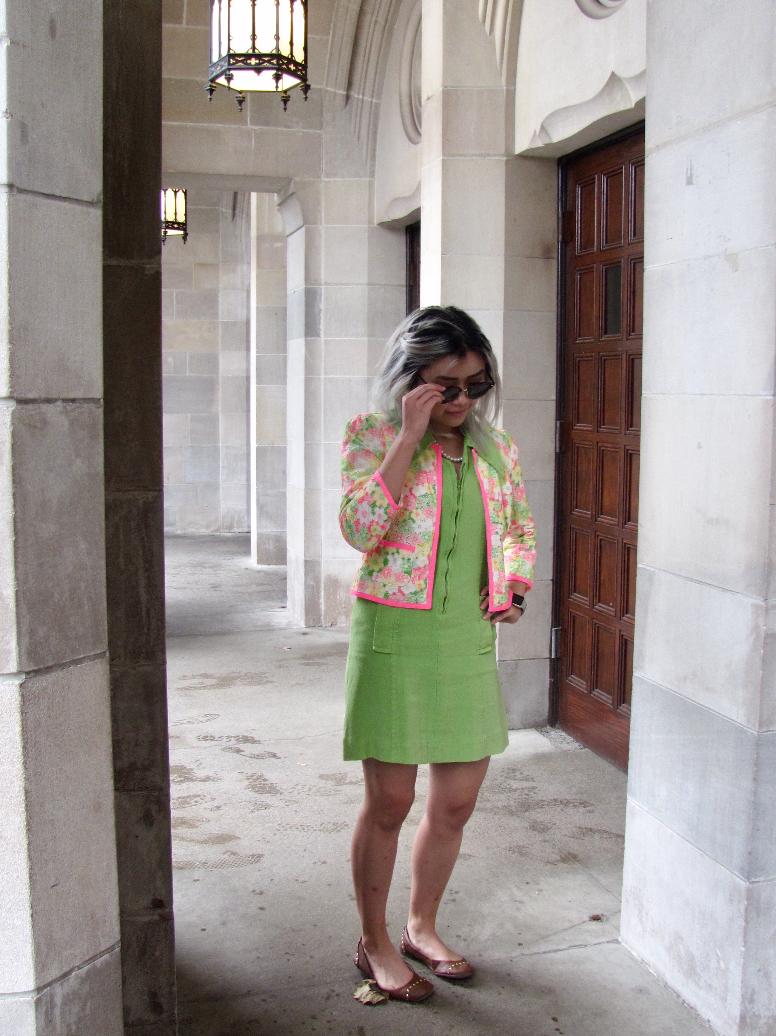 No, the real reason behind why this outfit is so summery (and also kind of like a rich Southern PTA-attending mother) is because on this day, I was heading home for the Thanksgiving holiday, and I knew I wasn’t going to have much use of a neon Lilly Pulitzer jacket and a when it’s 20 below in South Bend, Indiana. So, to save space in my suitcase, I just wore them home, and then I left them there.