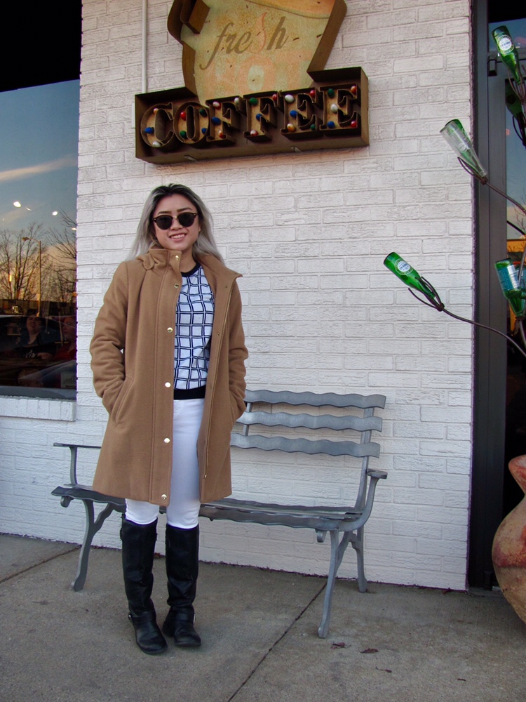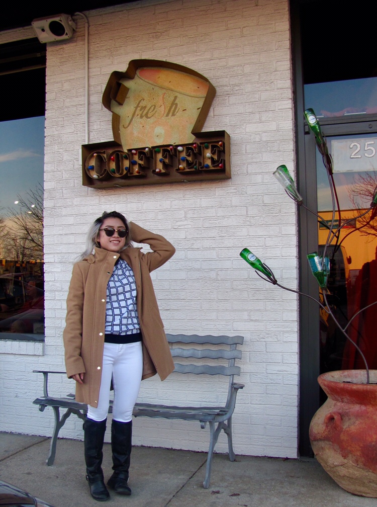 IN LOVE with that jacket, I need it in my life haha! You look stunning! 🙂 Also, can we talk about how cute that coffee shop is! x