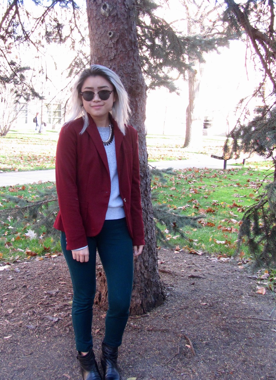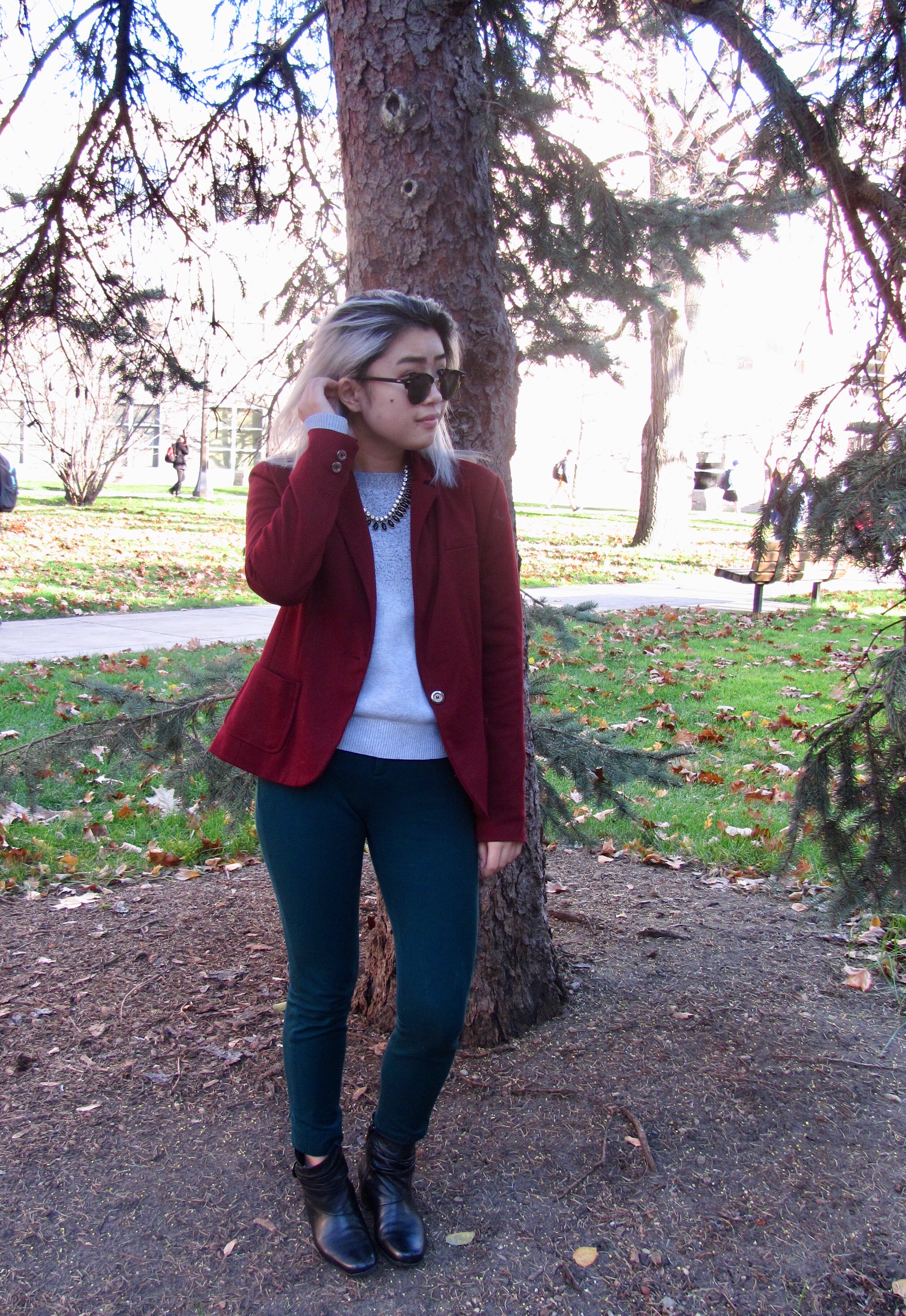 And it’s my goal, from now until December 25, to continue dressing in Christmas outfits. Call it an outfit challenge. How many ways can I wear the red and green pieces in my closet? How many hours can I go in my wool Abercrombie Christmas sweater before I’m trying to itch off my pores? Looks like now’s the time to find out.