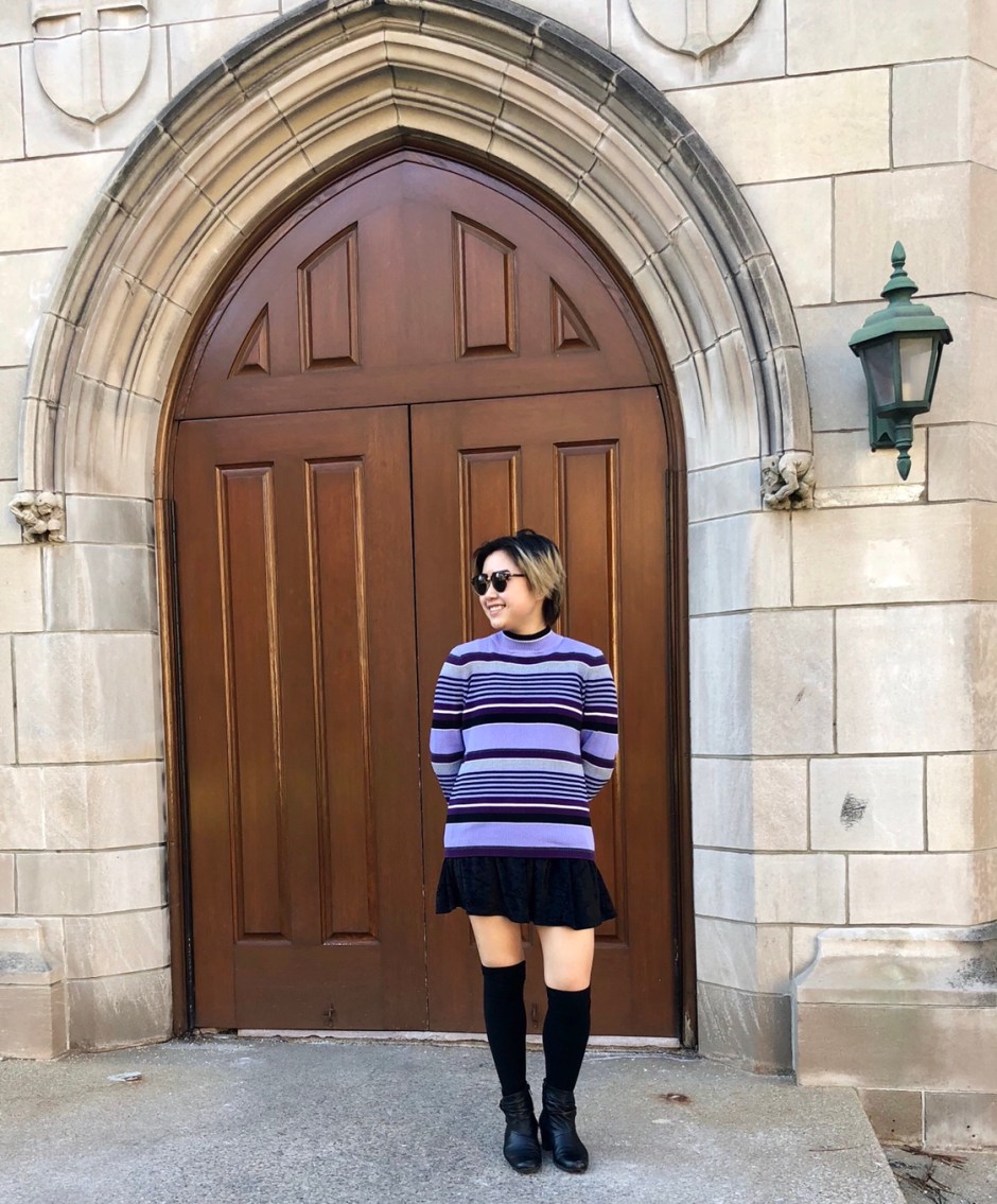 You think I’m kidding? No – I really did get all dressed up here just so I could take some pictures and then sit in my dorm room the rest of the day trying to convince myself to do homework.