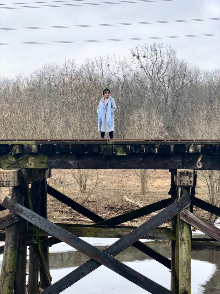 It was a pretty easy climb to get up to the tracks, but once we were up there, it was significantly more nerve-racking. For one, the wooden ties were each like, six inches apart, which wouldn’t be a big deal if the tracks were just on the ground except, you know, they weren’t. They were ten feet off the ground, and at the bottom of the drop was a shallow creek. A wrong step would mean a potentially broken ankle.