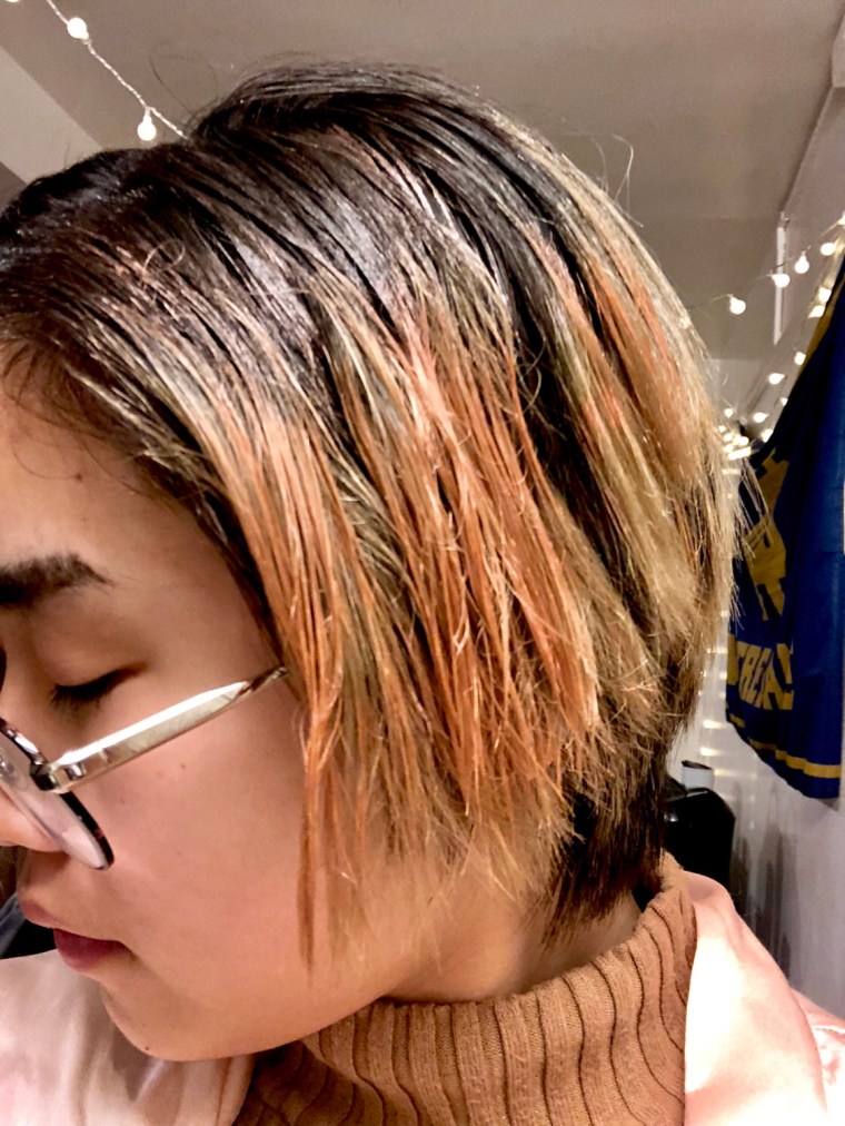 A little background on my hair before I get much farther – I have naturally dark, thick, pin-straight Asian hair that had been bleached to obscurity before, just within the last month, being chopped off into a short pixie. My hair’s definitely beginning to get healthier, perhaps due to the ample amount of root growth I have, but the lighter brown bits are definitely more on the dry side.