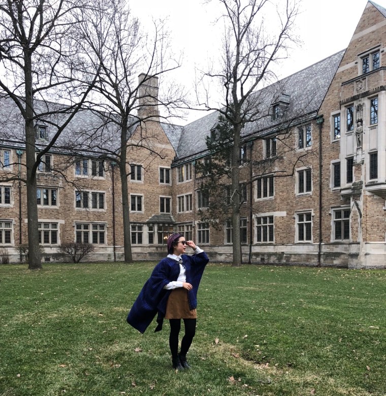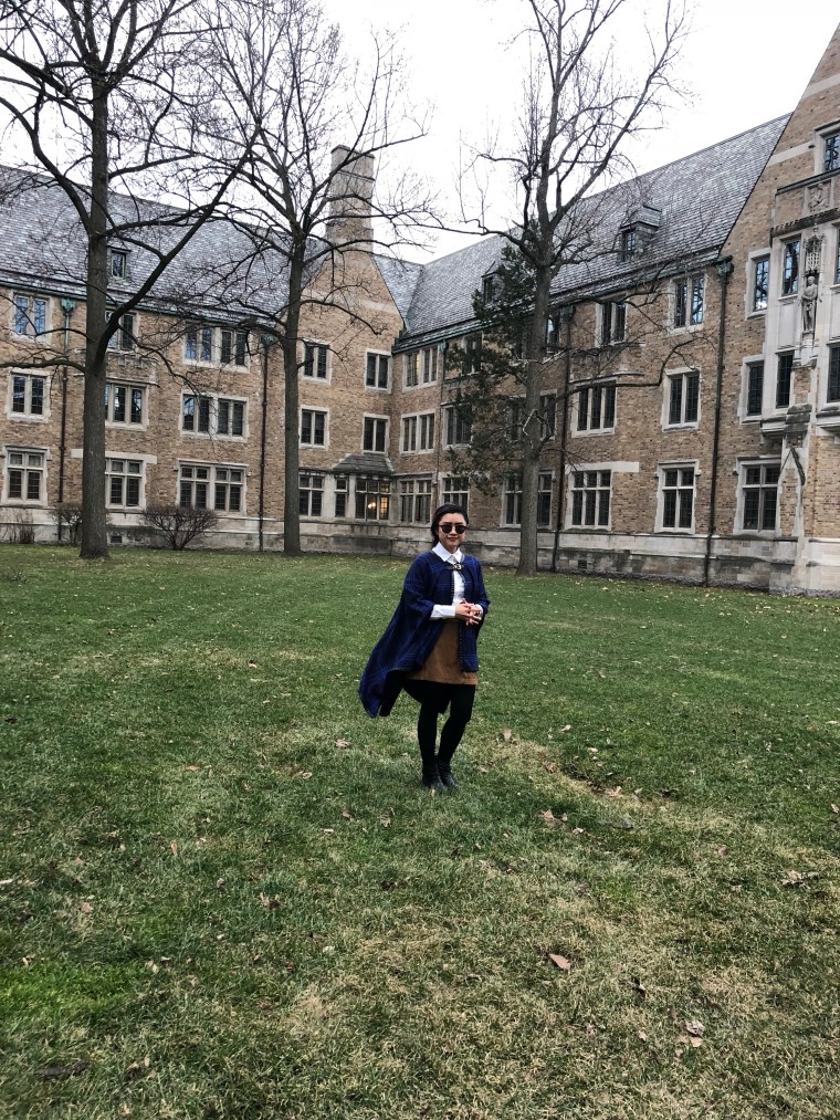 The whole aesthetic reminds me of something out of Taylor Swift’s “Blank Space” video — something about the theatrical outfit paired with the rich manor behind me. Or, alternatively, as one of my friends passing me in the dining hall said, “it looks like something Rowena Ravenclaw would wear.”