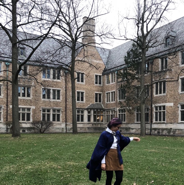 The residence hall behind me, Dillon (or maybe it’s Duncan?), has this wonderful little Harry Potter-esque courtyard that makes for a really dramatic, castle-like background. I don’t use it as much as I should.