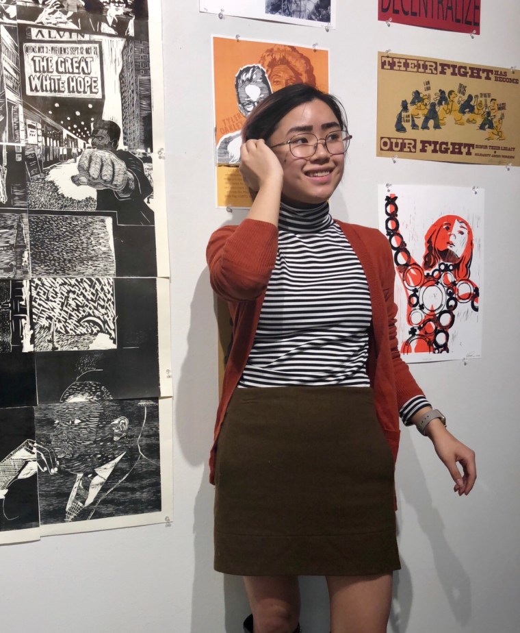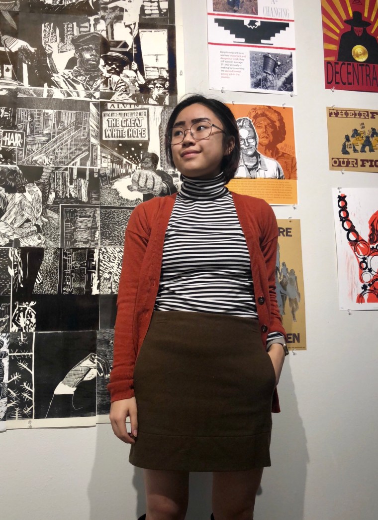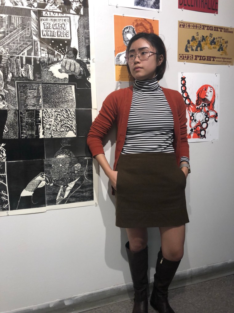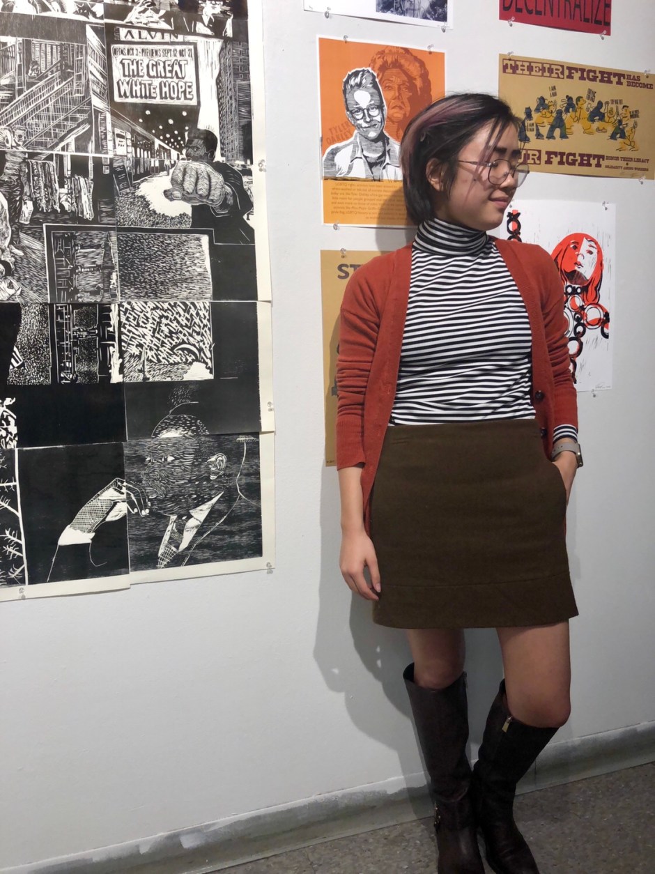 Sometimes though, I’ll find patches of color in unexpected places — like this collection of prints that are currently on display in the Riley art building. I don’t know what class they’re a part of, and I don’t know what they’re supposed to mean (though I think it may have to do with PSAs?), but they had a nice orange theme going on, so I jumped on the opportunity to get some shots when the building cleared out for the night.