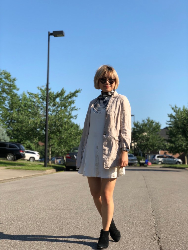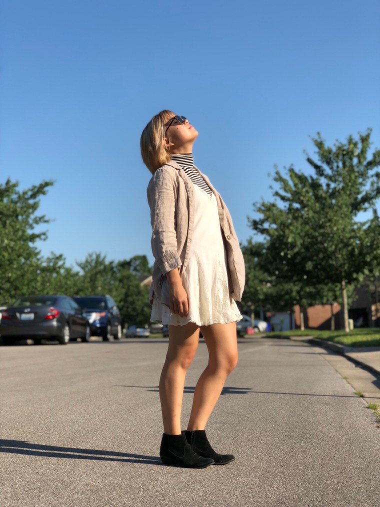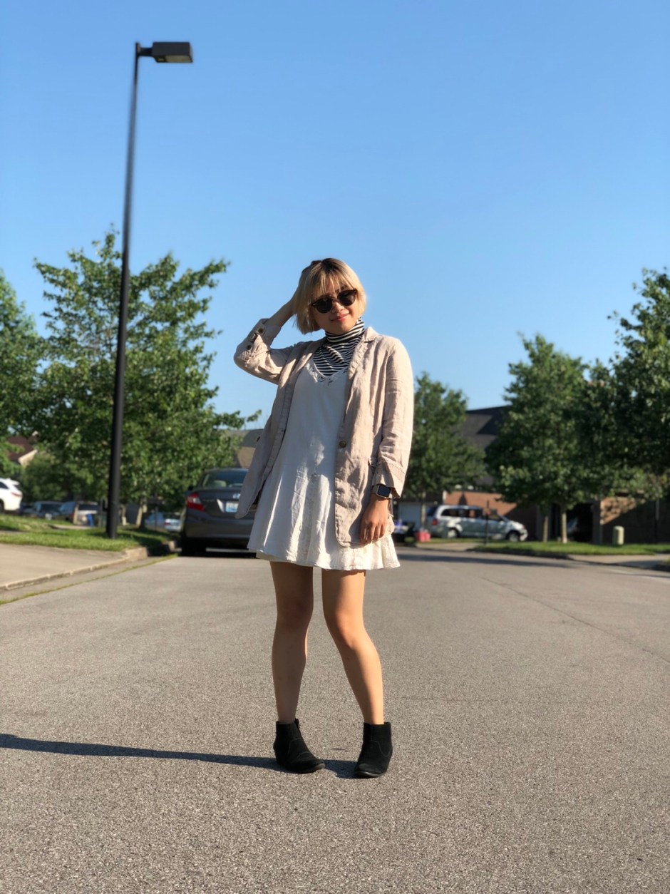Was a turtleneck and a jacket a little excessive? Maybe. But does layering those two pieces along with my sundress make the whole outfit a lot more interesting than if I had just done the plain white dress? You betcha.