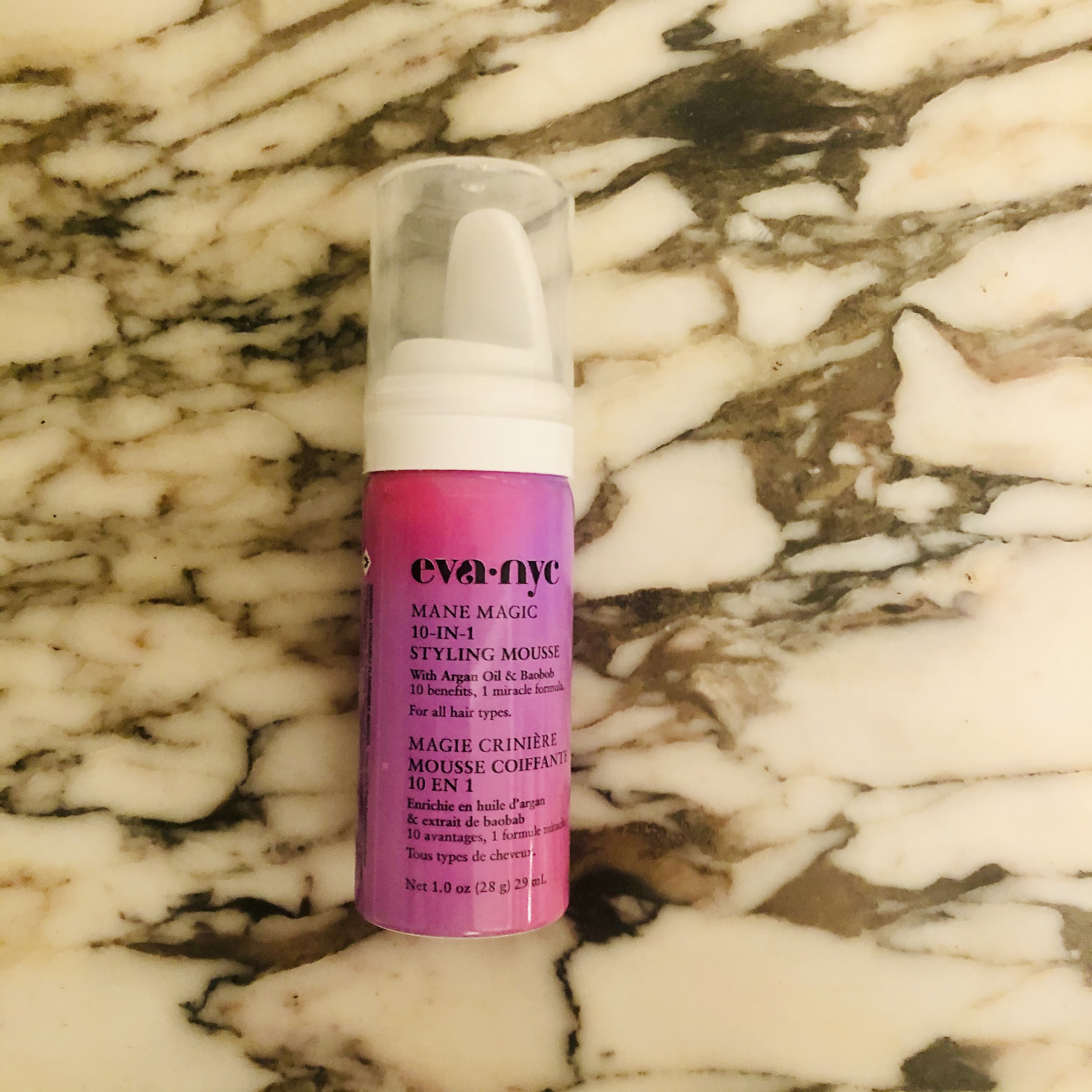 Lastly: the Eva NYC hair mousse. This product was something of an odd one for me to review. I honestly just don’t use hair mousse…ever. I had a phase there for a while (again, in middle school) where I’d wash and blow out my hair every morning in an attempt to create those texturized beach waves that were super popular in 2013, and I’d use it then, but I just don’t have time for that sort of thing anymore. Plus, with my bleach-damaged hair, I don’t really like to use heat styling products at all, and so doing a blow-out is out of the question.