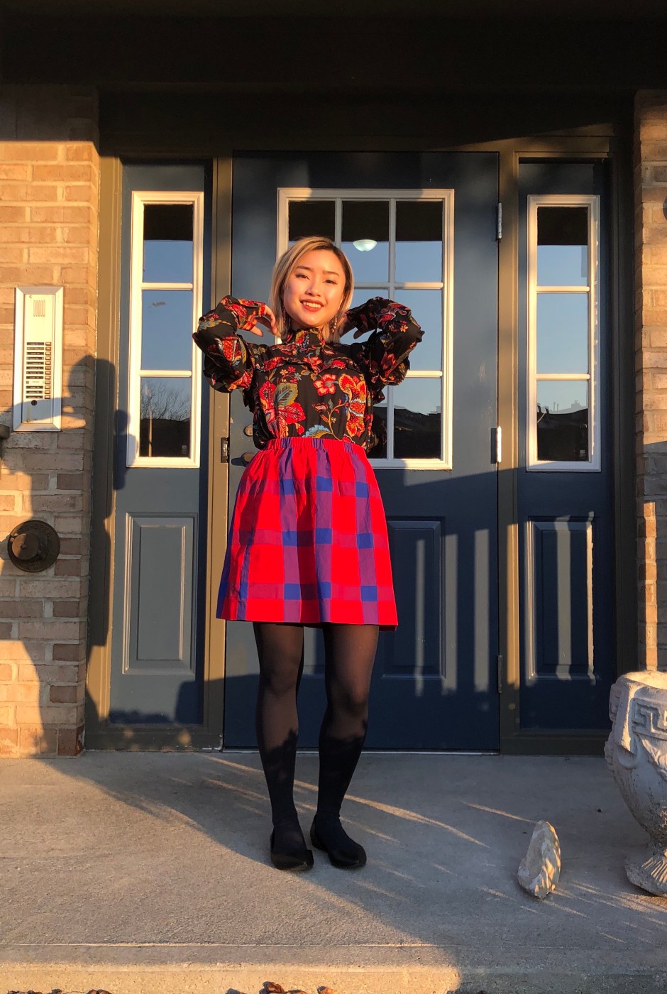 Thanksgiving also makes a great opportunity to mix pieces that could lean Christmas-y or fall-ish. This outfit would look at home on a