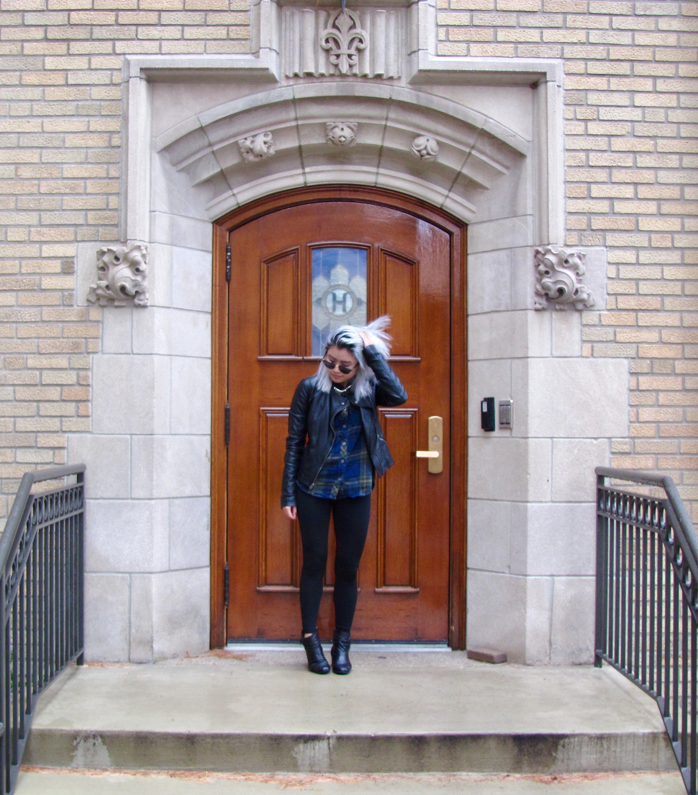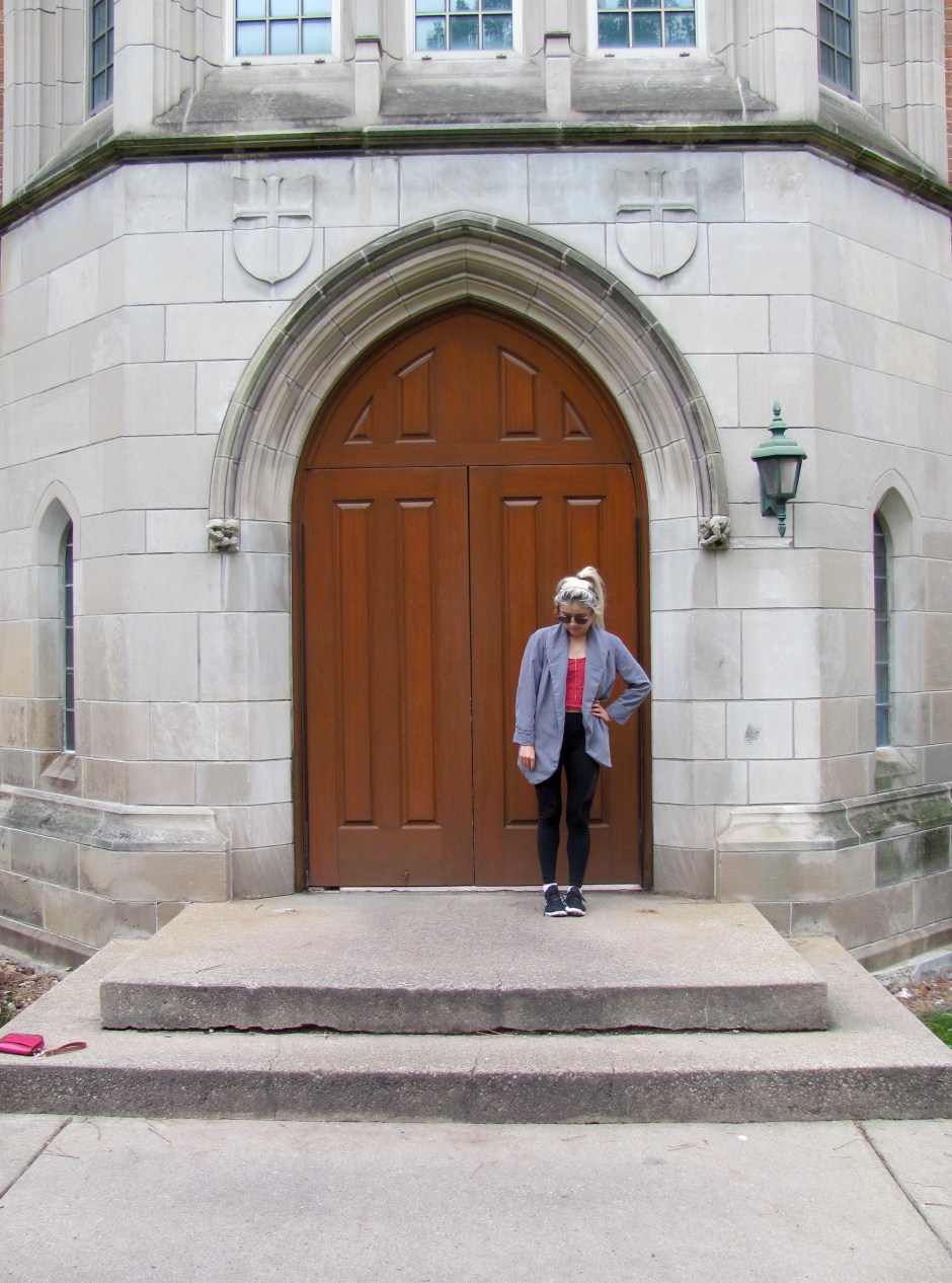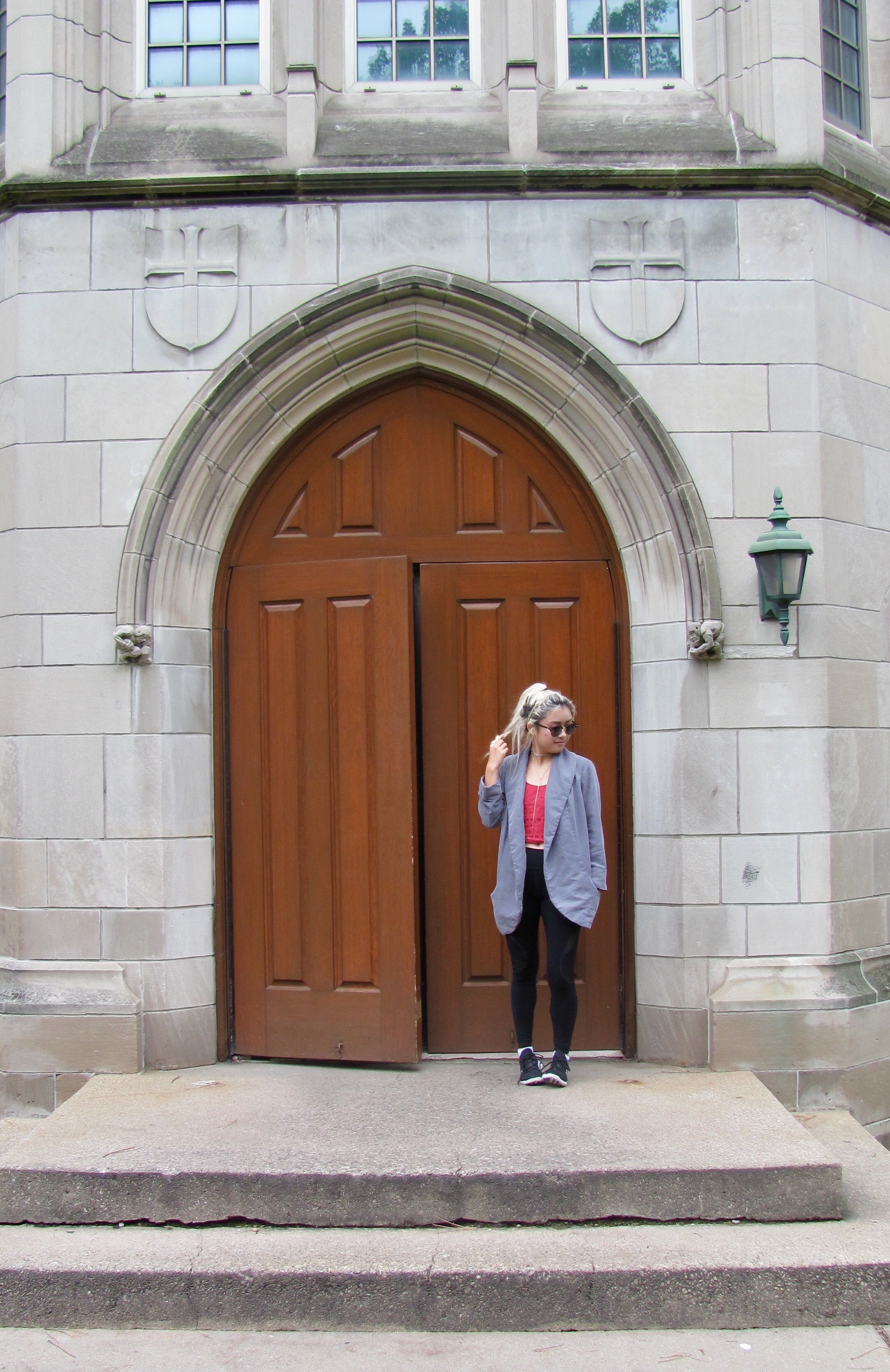 Yes, once again, in the middle of my OOTD photo shoot, someone came along and hit me with a door. This time, I heard the door beginning to open before it was too late, so I was able to jump out of the way, but it was awkward nonetheless. The person exiting the building always gives me this look of utter confusion when they see me, a kind of ‘’why were you leaning against this door I was trying to use? Why does that person have a camera?’’