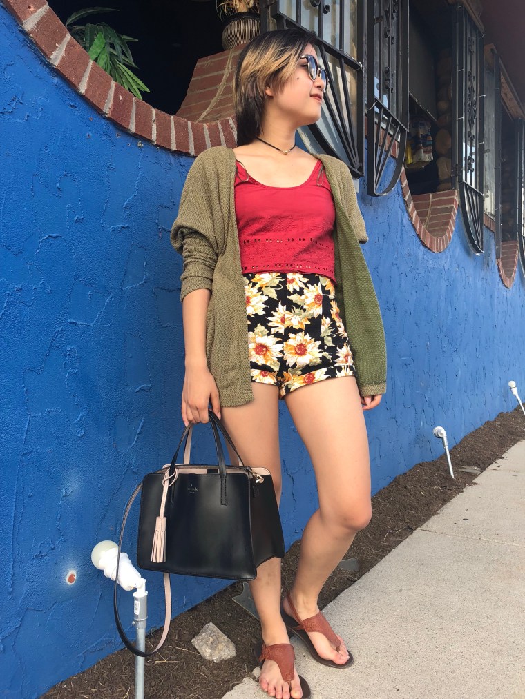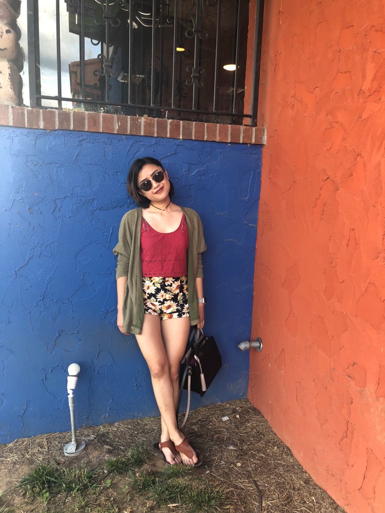 I’m always on the lookout for new and colorful backdrops for my OOTD photography, and I thought this Mexican restaurant’s walls worked perfectly for that. Some of the most unconventional locations can make for good backgrounds, and you never know when they’re going to pop up — I once used a bathroom wall, which probably takes the cake for unusual backgrounds.