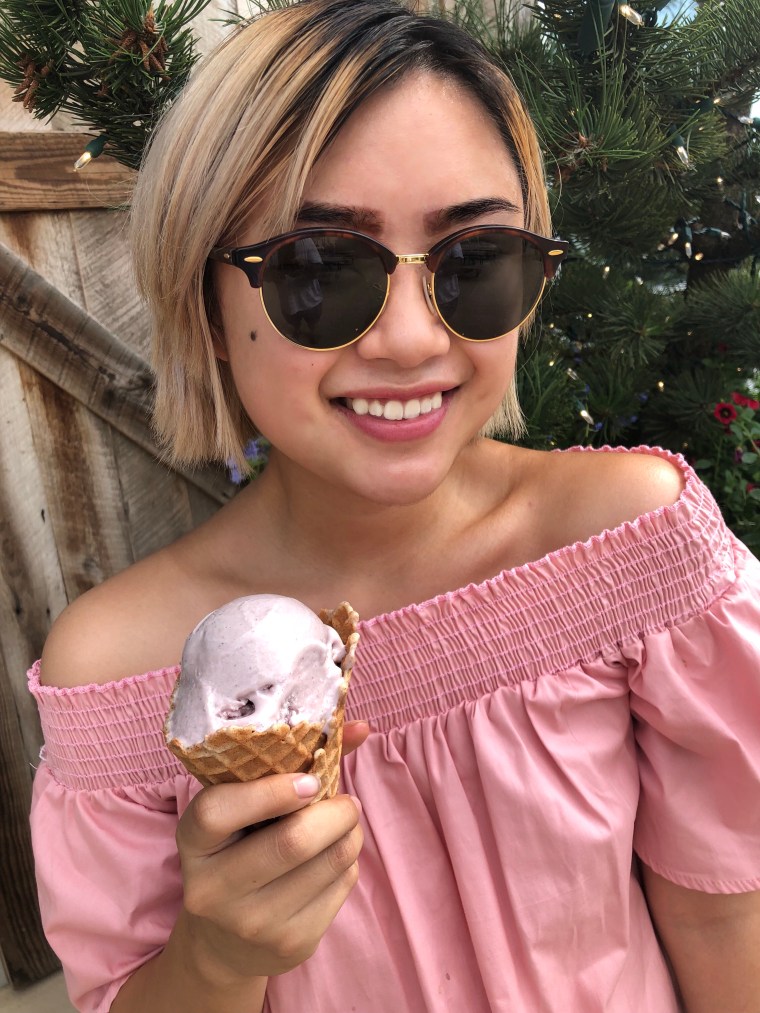 If you’re wondering, the flavor of the ice cream here is Kentucky Blackberry Buttermilk, and it’s one of my favorite flavors of all time. I don’t get tired of it; I order it every time I come to this particular local ice cream shop. Rather than being super sweet like a lot of ice creams, its flavor comes from its creaminess. 10/10 would recommend.
